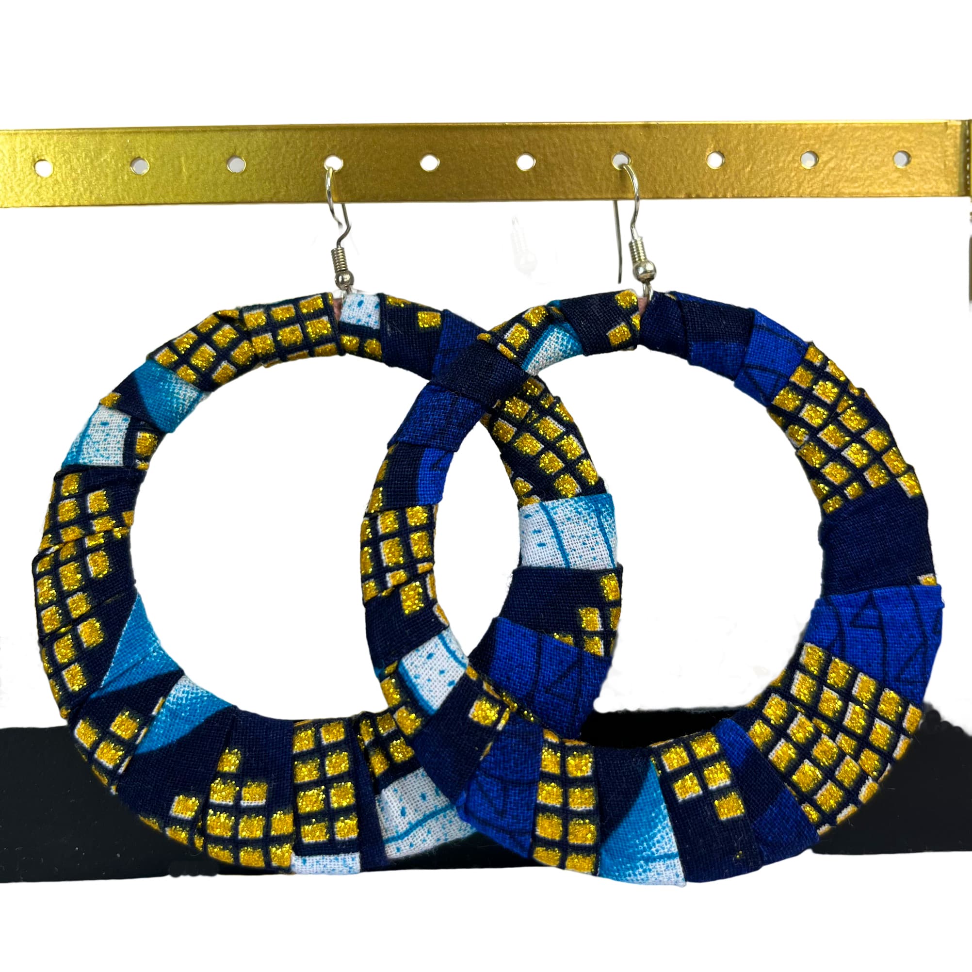 Boucles d’oreilles wax “Awa” bleu et doré : L’Art du Tissu